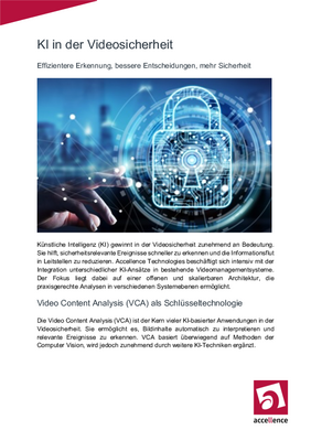 Sie hilft, Ereignisse schneller zu erkennen, Fehlalarme zu reduzieren und Leitstellen zu entlasten. Auf Grundlage eines Vortrags beim BHE-Kongress Video zeigt Accellence Technologies in einem aktuellen Referenzbericht, wie sich verschiedene KI-Ansätze – von Deep Learning über symbolische Verfahren bis zur Anomalie Erkennung – in bestehende Videomanagementsysteme integrieren lassen. Grundlage ist eine offene, skalierbare Architektur, die Analysen auf fünf Systemebenen ermöglicht: von der Kamera über NVT und Cloud bis hin zu Alarmserver und VMS.