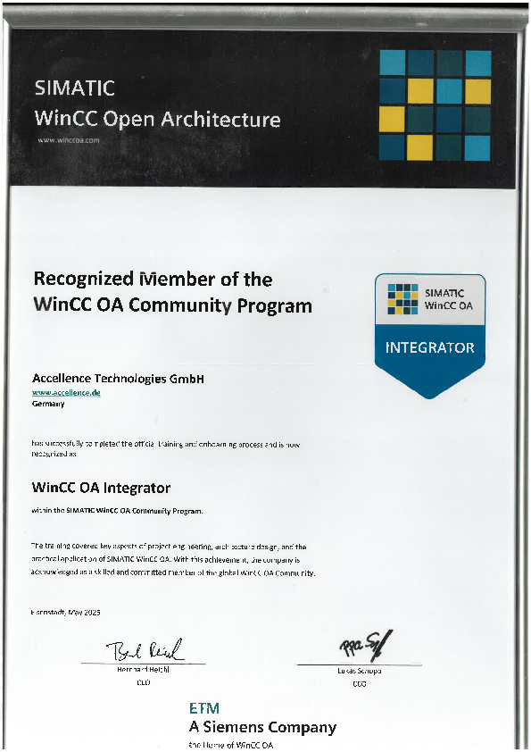 Accellence wird SIMATIC WinCC OA Premium Solution Partner